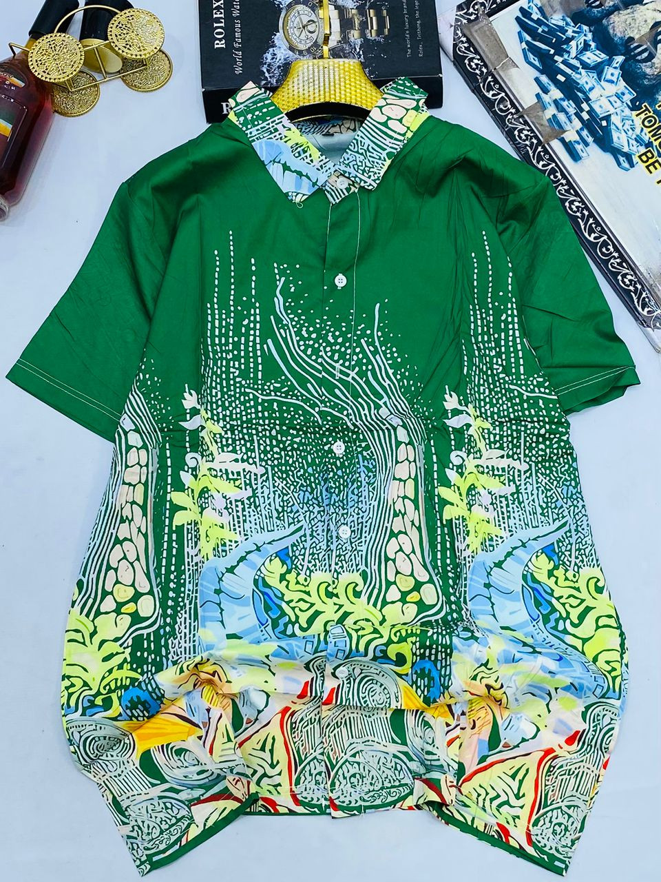 Ignite your wardrobe with this ? bright red abstract wavy shirt! Silky satin fabric in vivid red with swirling yellow, blue, white, and red patterns for a dynamic, artistic streetwear vibe – bold energy and luxe drape.