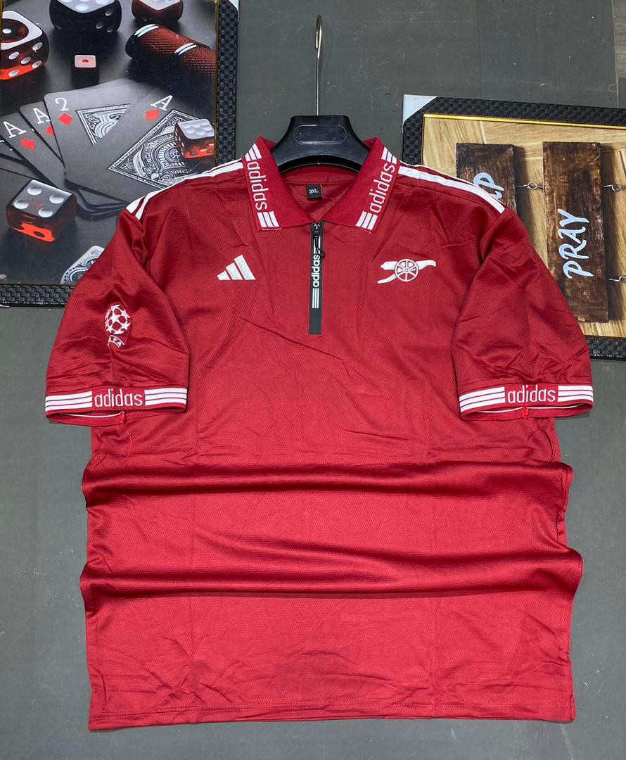 ? Classic Arsenal 2025/26 adidas home jersey replica in iconic red! Features half-zip polo collar with 'adidas' repeat, Emirates-free clean look (some versions vary), Arsenal cannon crest, UCL sleeve patch, and breathable mesh fabric – spot-on to the players' kit for the season.