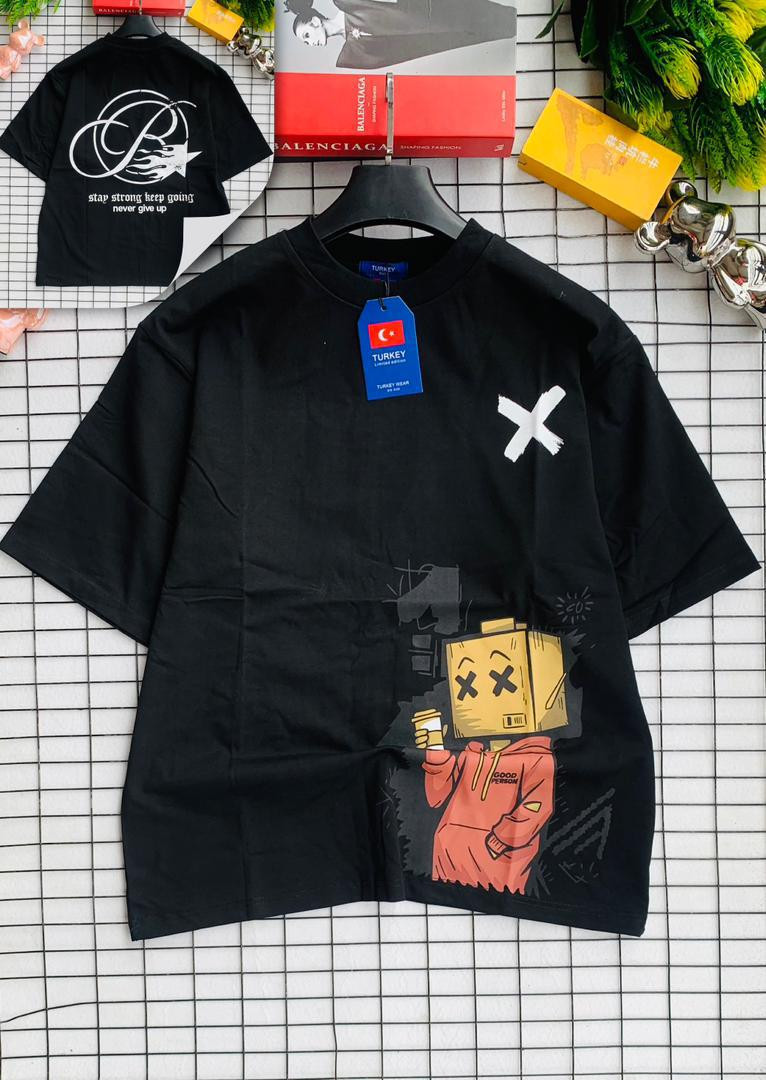 Stay positive & stand out with this ? beige oversized cartoon tee! Soft tan cotton with bold black box-head character print holding coffee + "GOOD PERSON" text, plus motivational back slogan – playful streetwear energy for Lagos vibes.