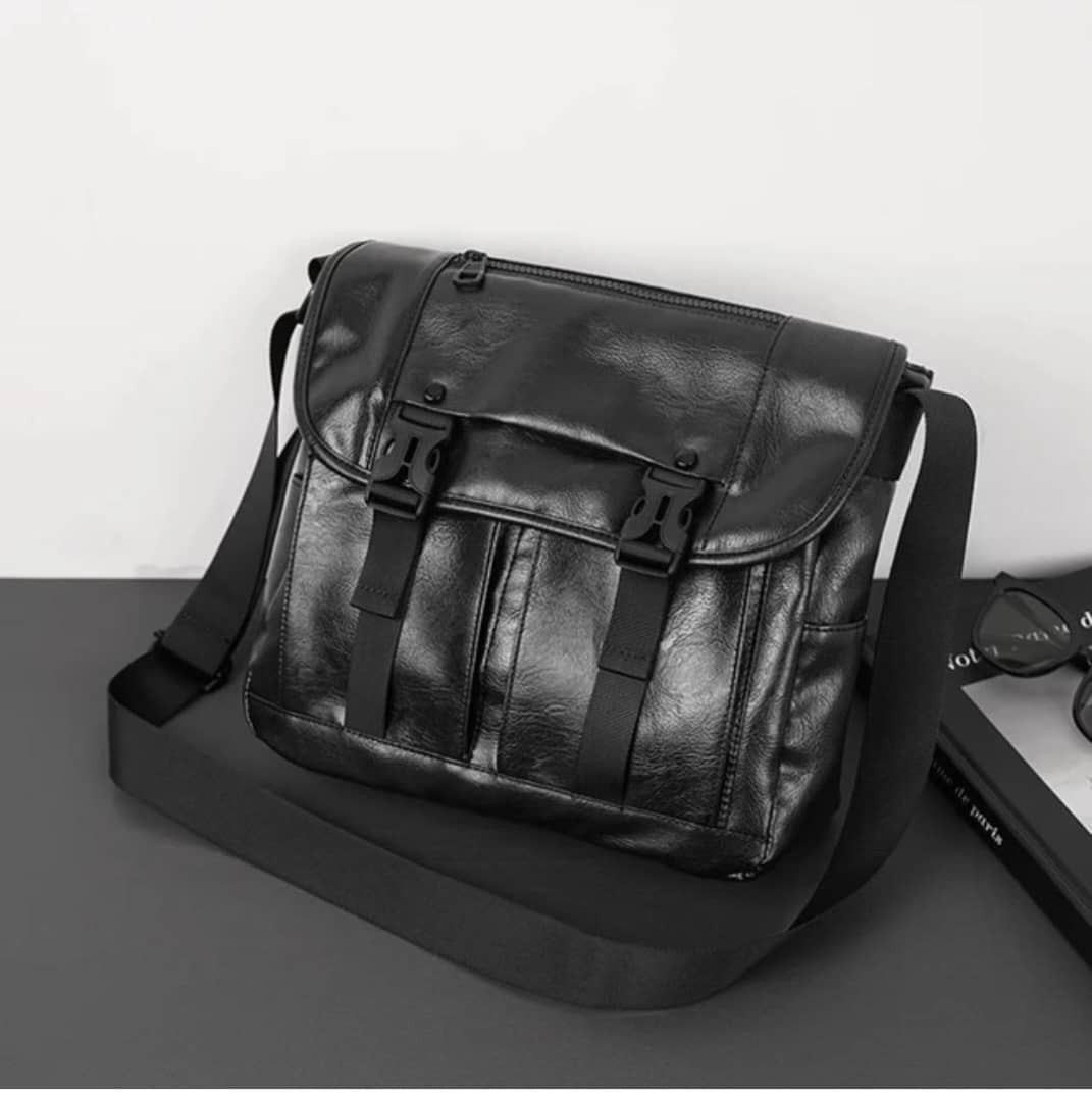 Classic & versatile with this ? black faux leather messenger bag! Matte black finish with front flap, dual buckles, and adjustable strap – roomy & stylish for Lagos everyday carry.