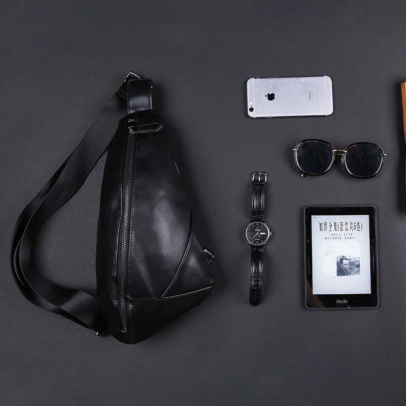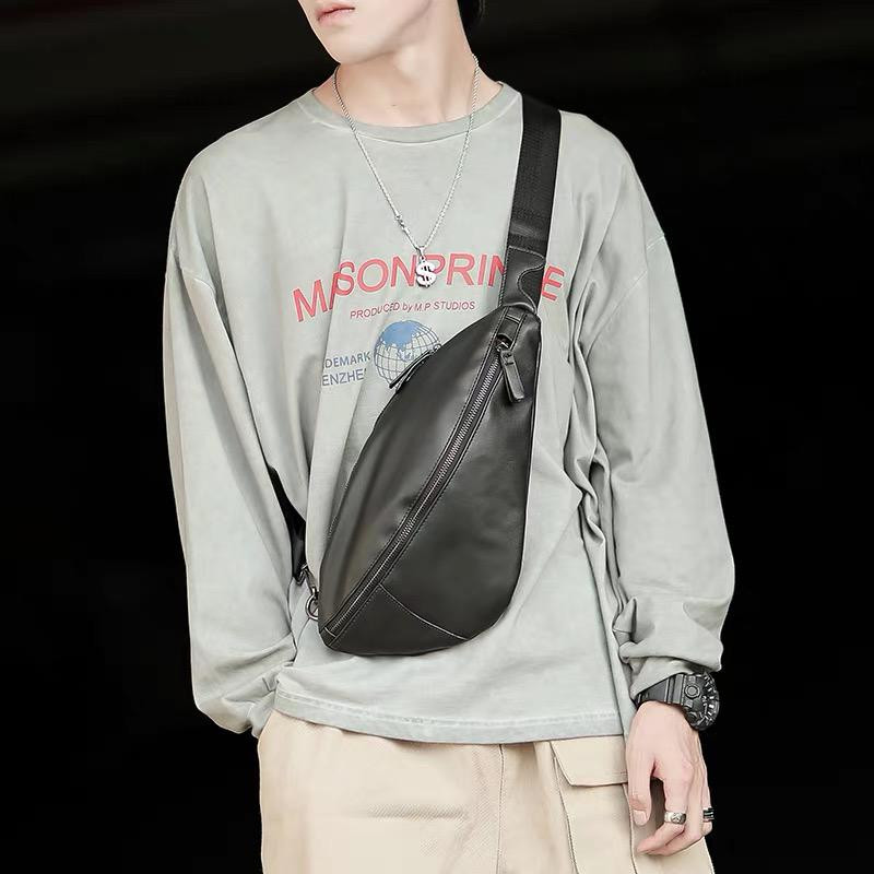 Black Faux Leather Sling Bag Crescent Chest Pack Adjustable Strap Crossbody Waist Bag Men's Casual Streetwear