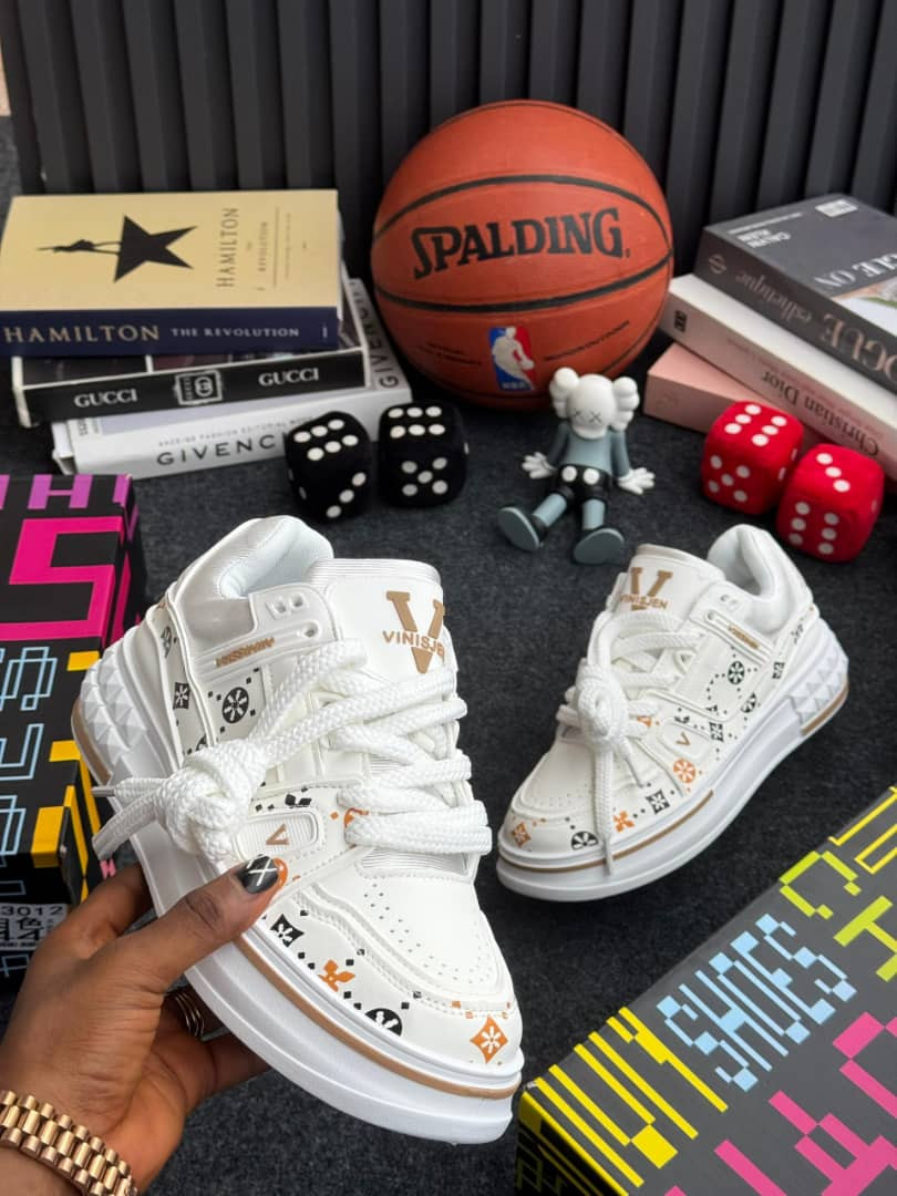Make a bold statement with these black chunky platform sneakers loaded with vibrant floral and cross emblem print – pure luxury-streetwear energy at an everyday price! The black upper explodes with red/orange/green floral motifs, small crosses, geometric dots, and abstract emblems (strong LV monogram-inspired dupe vibe), while the perforated toe box keeps it breathable. Red inner lining and midsole stripe add fiery contrast, and the thick spiked/ridged black rubber platform sole delivers massive height (2–3 inches lift) and edgy grip—perfect for Plumstead's chilly February streets or year-round urban flex.