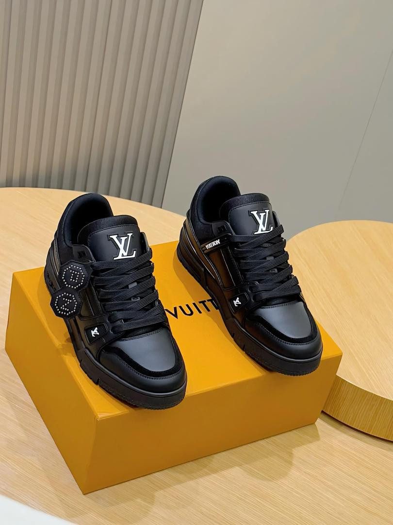 Padded tongue with bold "LV" initials + "VUITTON" side script