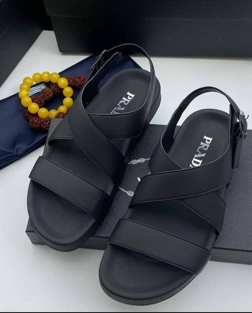 Channel quiet luxury with these ? black Prada-inspired platform sandals! Wide crossover straps in matte black with adjustable buckle, thick platform sole for subtle lift and comfort – sleek and versatile for Lagos heat.