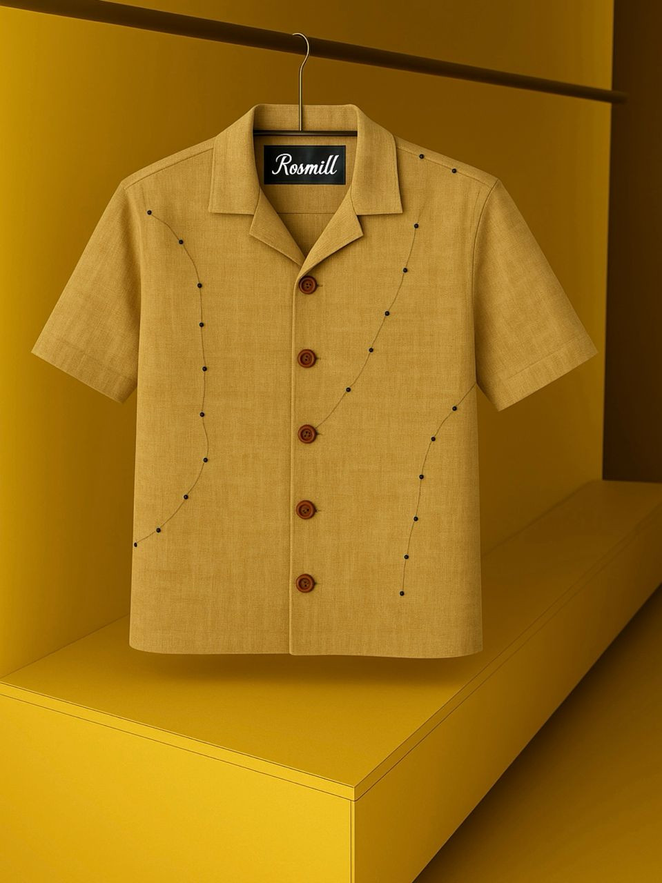 Elevate everyday style with this ? navy stitch detail shirt! Crisp navy cotton-blend with subtle black thread embroidery lines and brown buttons – camp collar, relaxed fit for Lagos streetwear luxury.