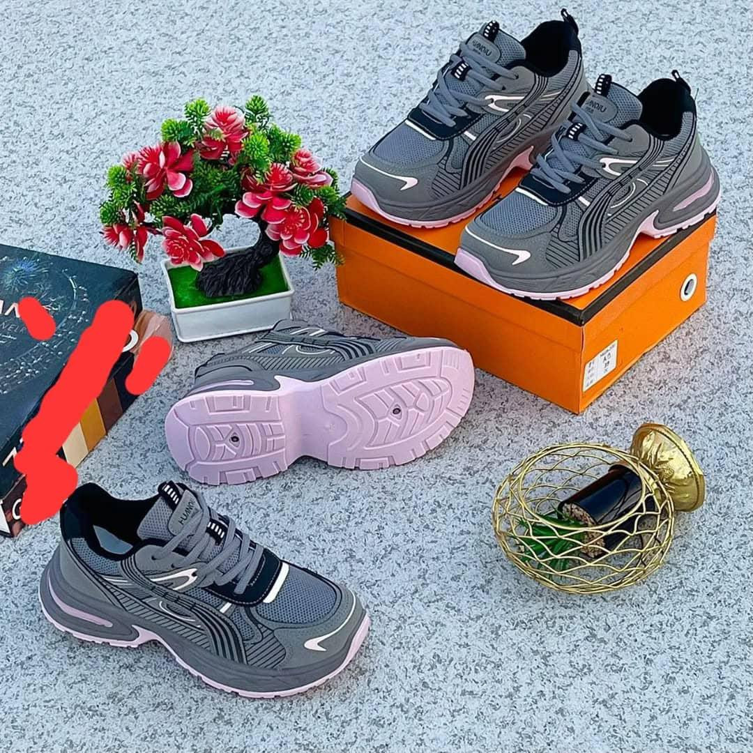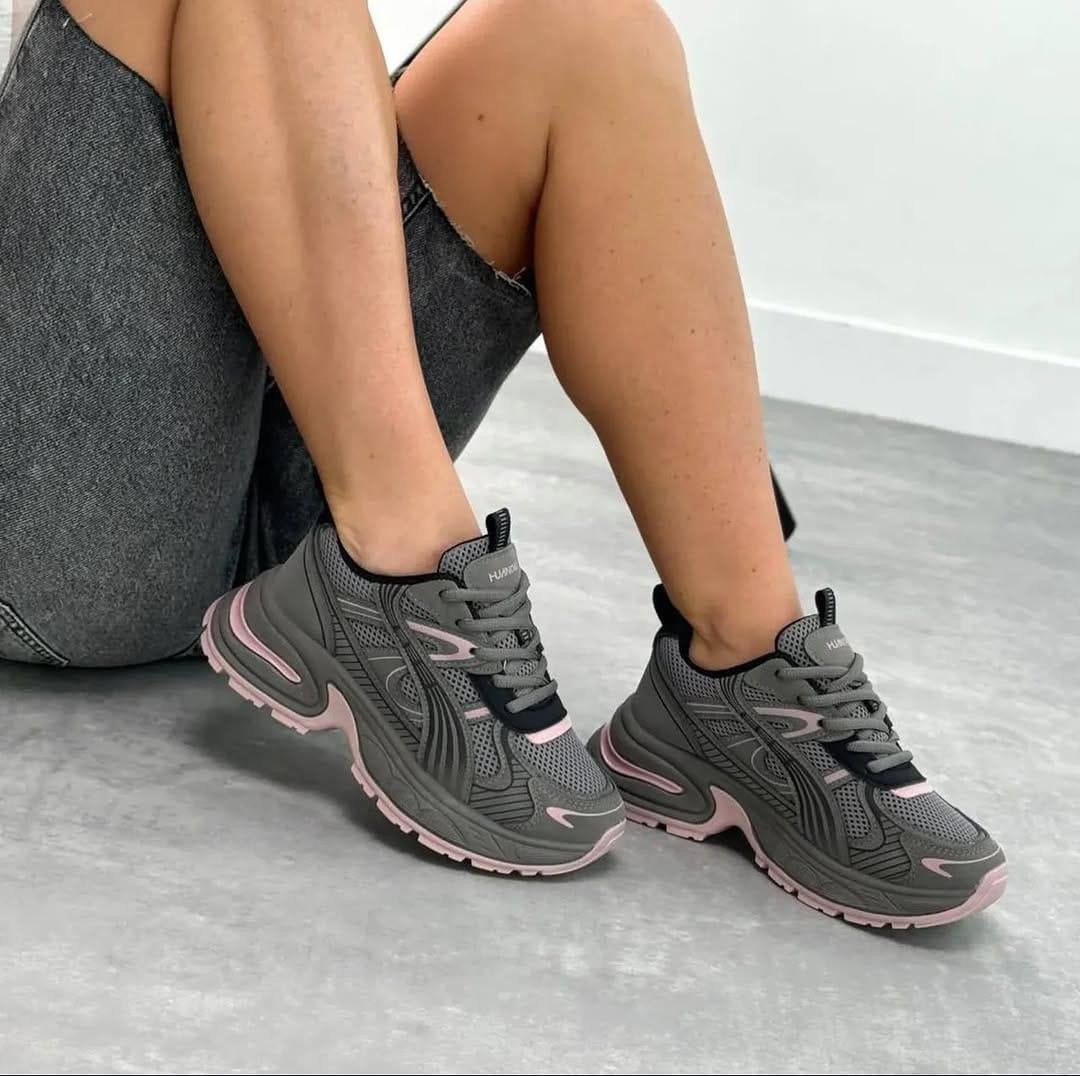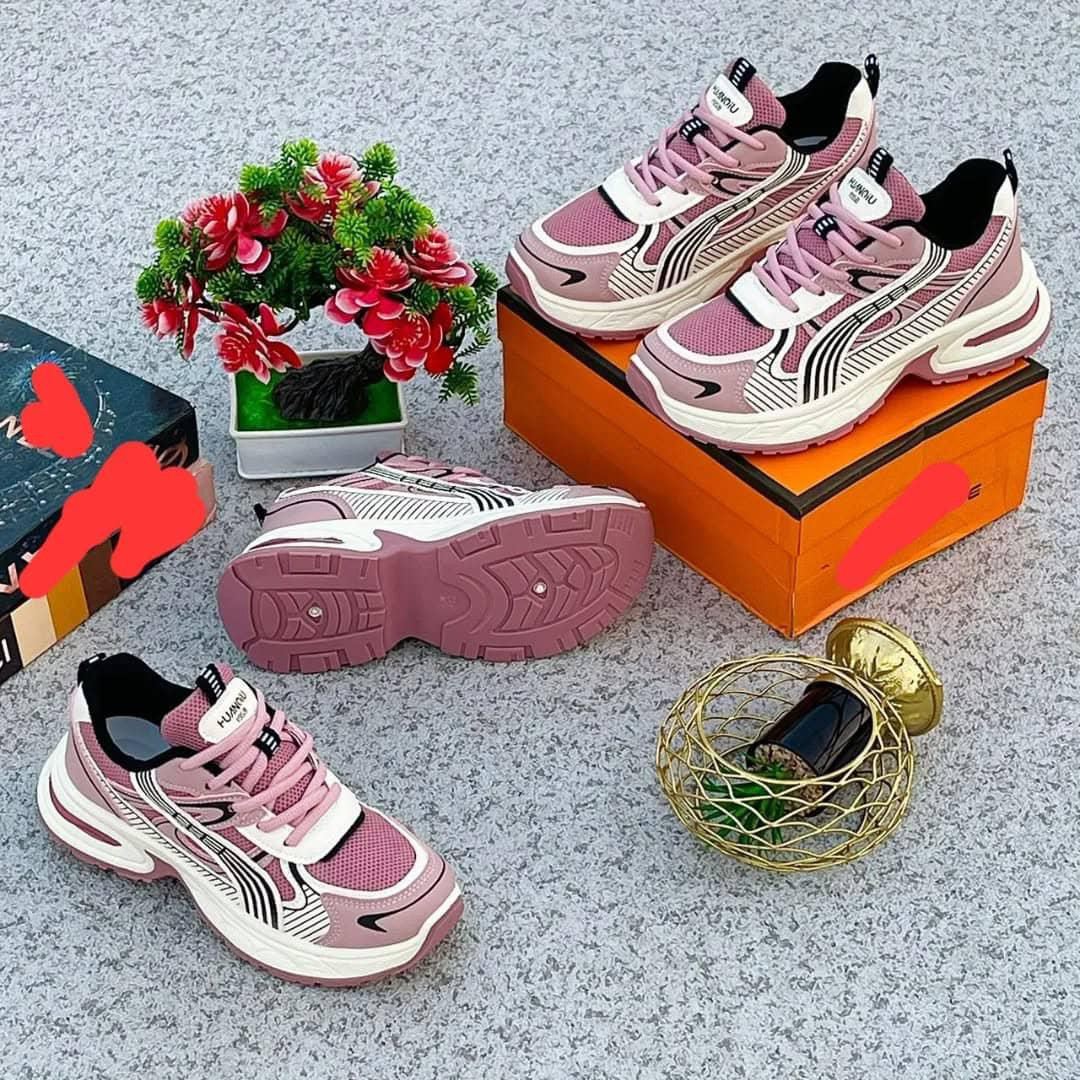 Rock the chunky trend with these ? pink platform dad sneakers! Soft pastel pink upper with bold black wavy/abstract lines for artistic flair, thick multi-layer white sole for height and comfort, and sporty lace-up design – perfect for everyday Lagos street style.