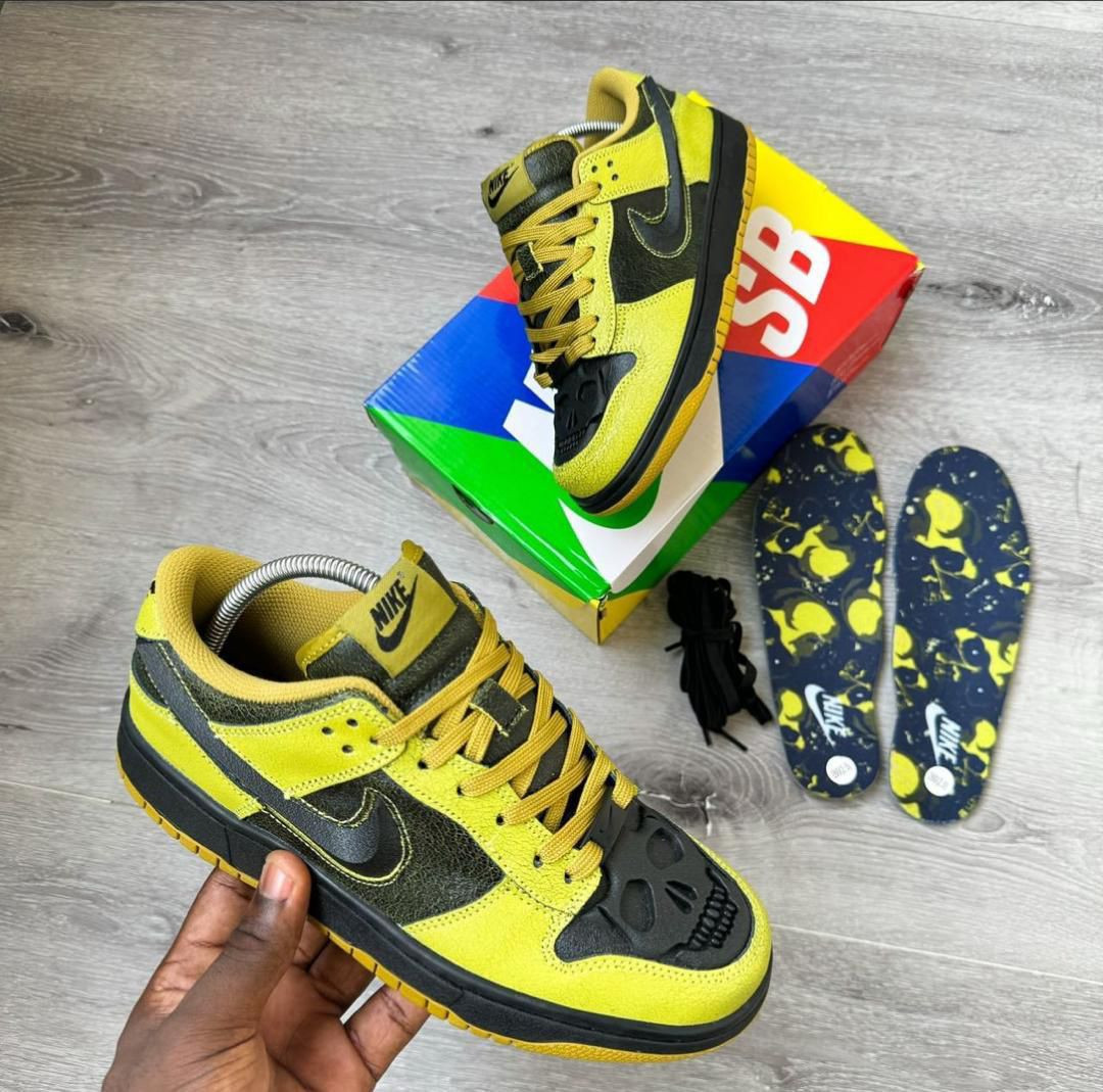 Drip heavy with these fire custom Nike Dunk Lows – brown/navy suede mix with embossed texture for that premium street flex!