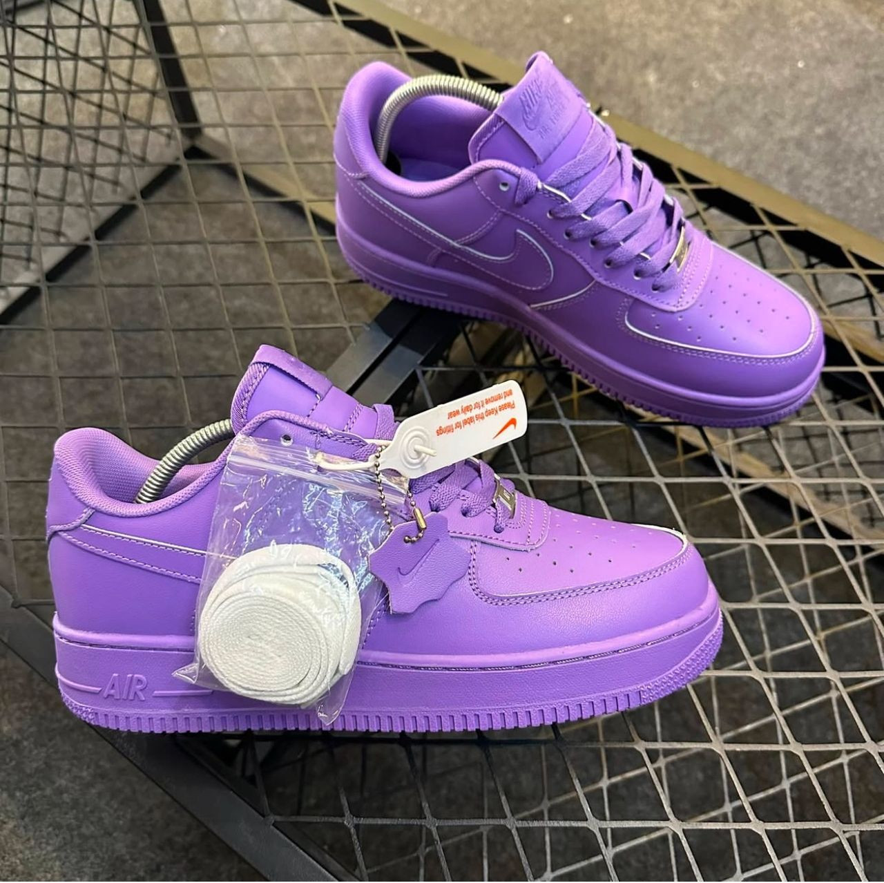 Metallic silver Swoosh + light blue laces – bold shine
