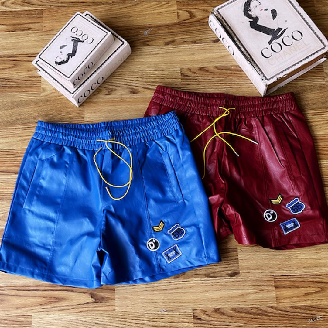 Channel artistic luxury in these ? faux leather "ART" shorts! Shiny black or teal faux leather with huge white "ART" leg prints, elastic drawstring waist – oversized lounge vibe for Lagos streetwear flex.