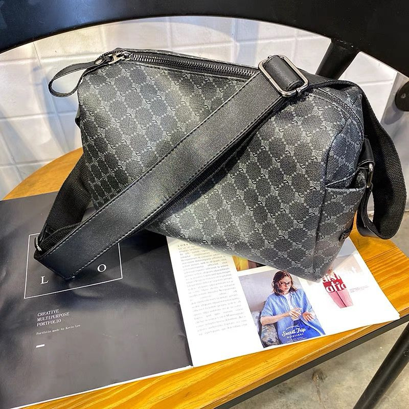 Channel quiet luxury with this ? gray GG monogram duffel bag! Tonal gray canvas with classic interlocking GG print, black leather trim, and adjustable strap – compact & chic for Lagos everyday flex.