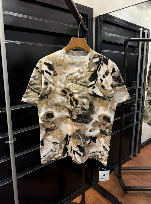 Blend into elevated drip with this grey all-over camo oversized T-shirt – smoky tie-dye camo meets heavy premium cotton for moody street luxury! The thick 350–400gsm cotton-blend jersey fabric delivers structured weight, excellent boxy drape, and that sought-after vintage hand-feel, while the full-body abstract camo print in charcoal grey, black, and subtle dark tones features a tie-dye/smoky fade effect with irregular blotches for high-end, distressed depth. Relaxed oversized fit with dropped shoulders, ribbed crewneck, longer curved hem, and clean construction keep it ultra-versatile—perfect for Plumstead wearing solo with jeans/cargos/sneakers or layering under hoodies/jackets in mild February chill for moody streetwear, quiet-luxury camo, maximalist casual, or elevated everyday flex.