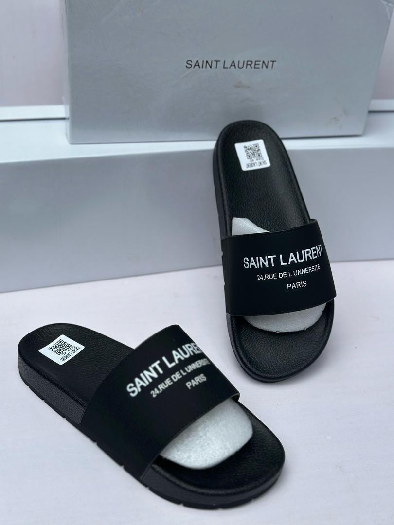 "Luxury Inspired Black Brown Slides SAINT LAURENT Text White Foam Footbed Matte EVA Pool Slippers Unisex Casual Footwear