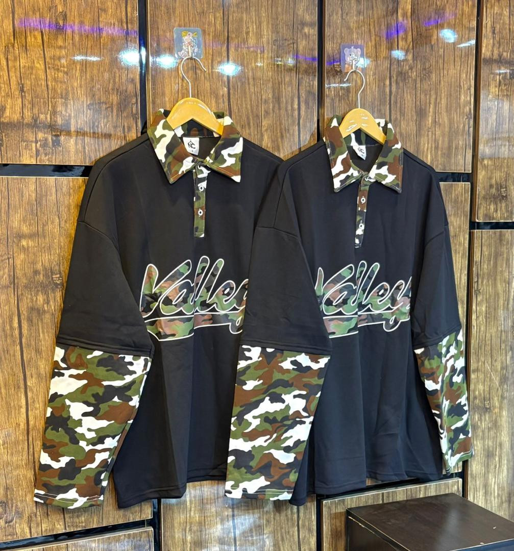 Elevate your everyday rotation with this unique camouflage patchwork long sleeve. Designed with a rugged yet clean aesthetic, this top features a "layered" look with camo sleeves and a matching collar for a bold streetwear statement.