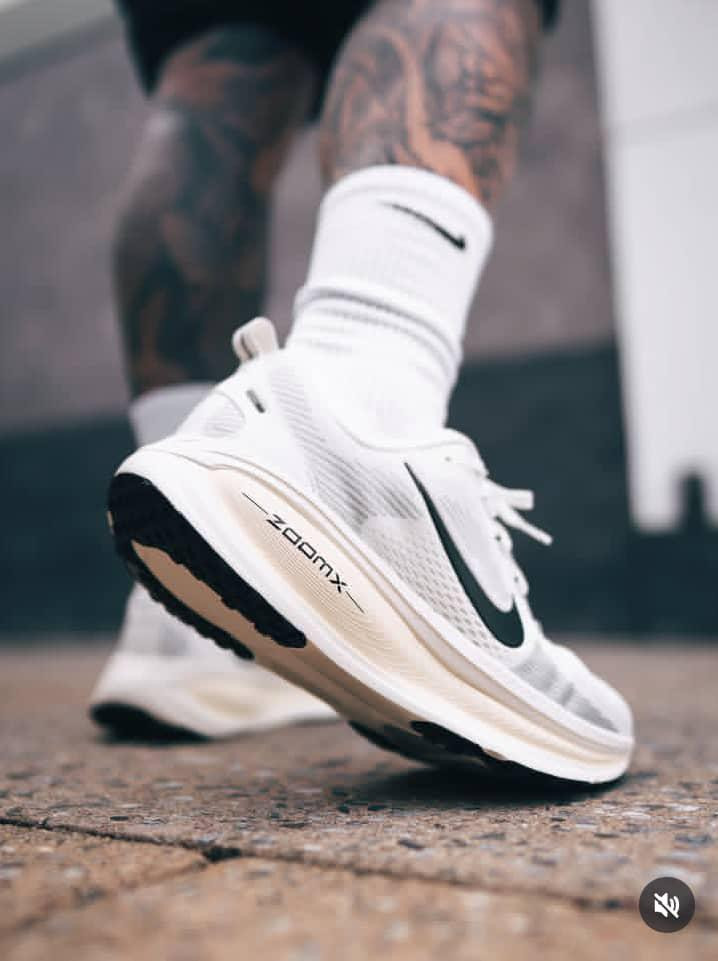 Ultimate Lagos comfort + style with these Nike ZoomX Invincible 3 sneakers – max cushion white Flyknit upper + black Swoosh for all-day drip!