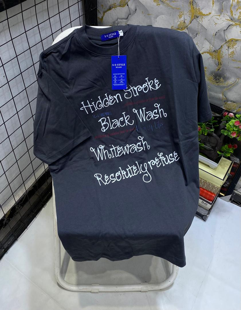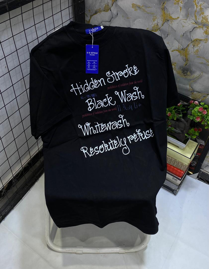 Make a statement with this black oversized graphic T-shirt – layered philosophical slogans and street-art energy for the bold! The deep black cotton body is covered in a powerful collage of white printed text: "Hidden Stroke", "Black Wash", "Whitwash", "Resolutely refuse", "prohibition of isolation from the world", "Busy Life", and "ML: TNG:THELL" in mixed fonts, sizes, and drip effects for raw, thought-provoking impact. Relaxed boxy fit, dropped shoulders, longer untucked length, crewneck, short sleeves, and soft breathable fabric make it ultra-comfortable and versatile—perfect for Plumstead layering under hoodies/jackets in February chill or solo with jeans/cargos/sneakers for alt-street, maximalist art-hype, motivational-statement, quiet-luxury, or introspective casual looks.
