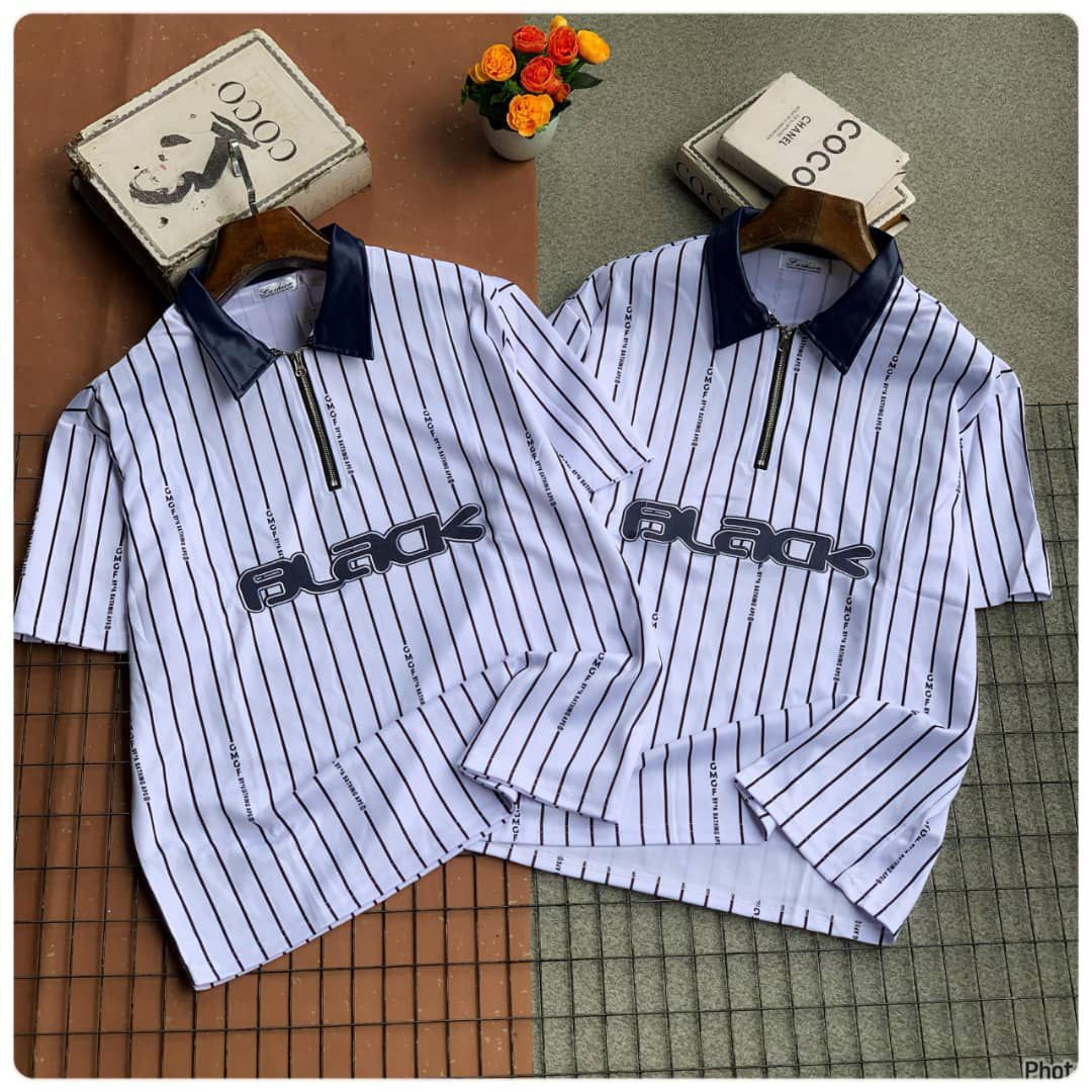 Heavy Lagos street flex with these oversized pinstripe polos – retro rugby style with bold "BLACK" print + leather collar for premium hype drip!