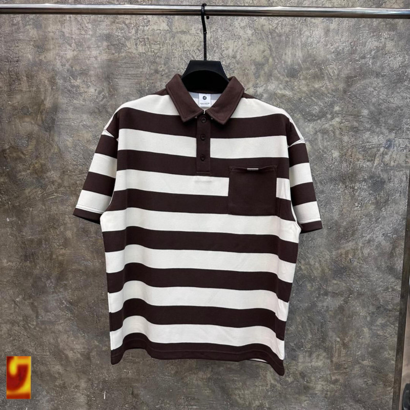 Minimalist branding + bold stripes for clean Lagos drip.