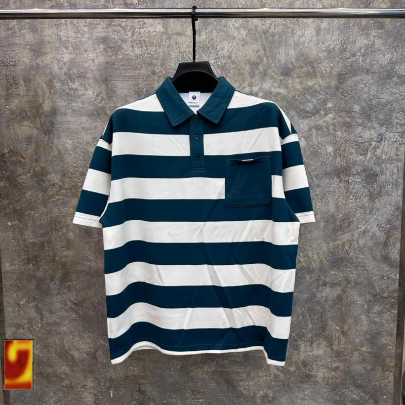 Fresh and effortless with this buoyant striped polo – oversized preppy-street perfection in teal green + cream!