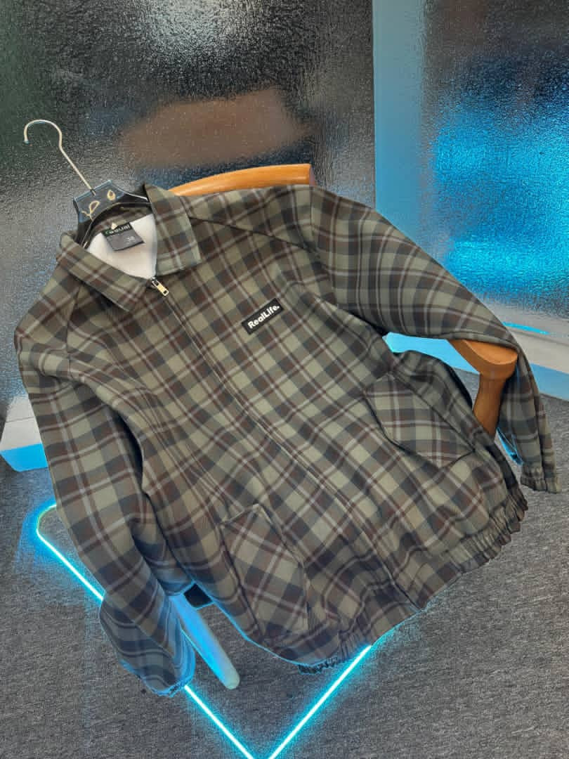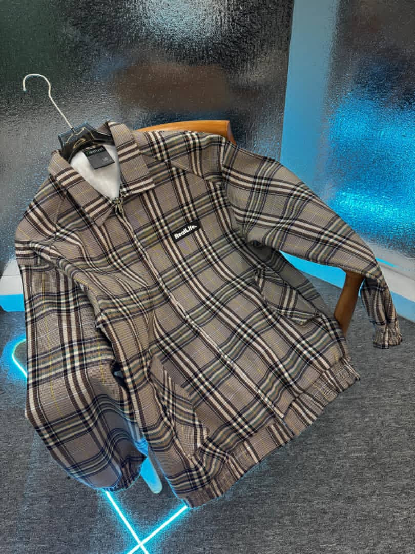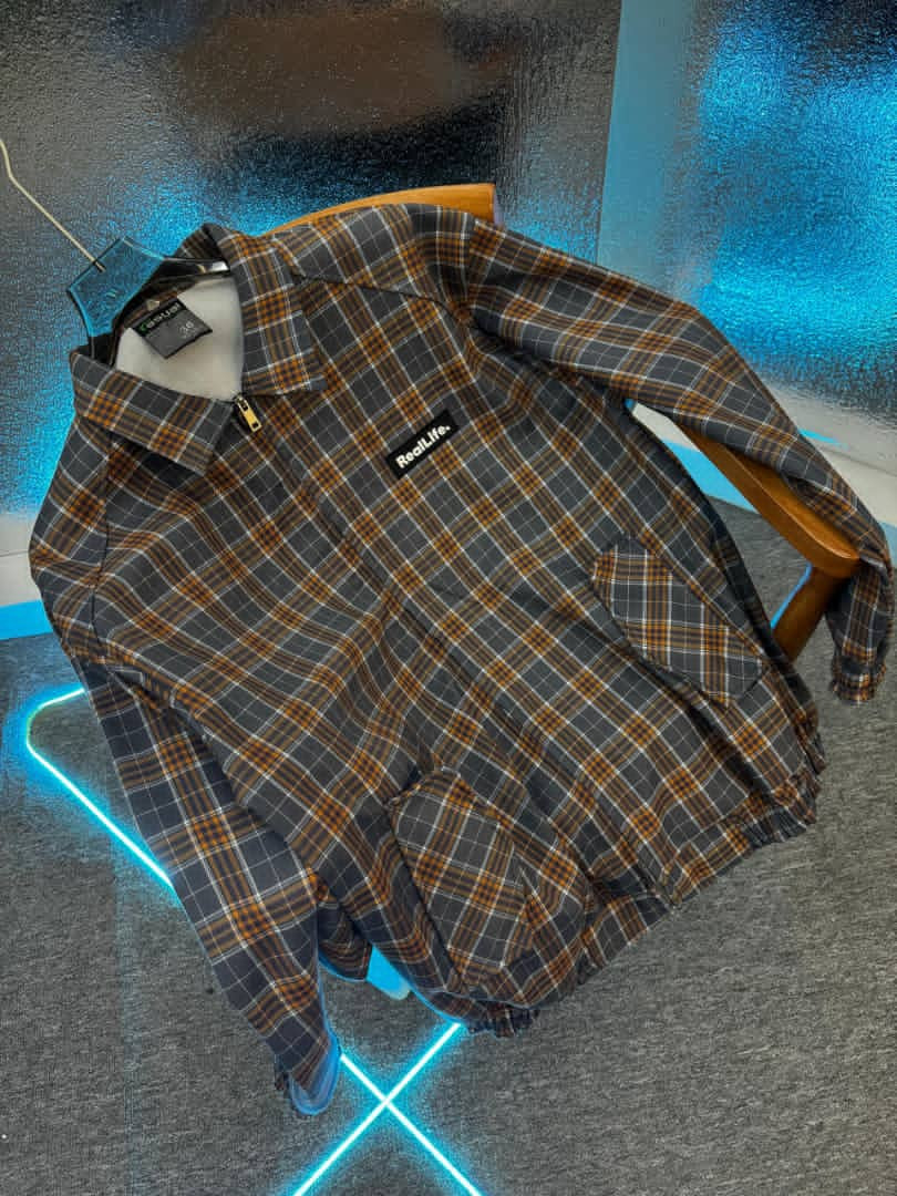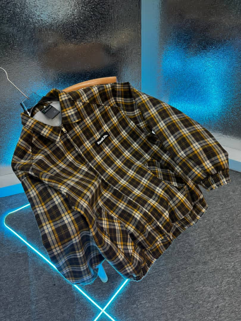 Layer up with attitude in this black/yellow plaid half-zip overshirt – retro bomber vibes meet modern streetwear comfort! The bold multi-check plaid pattern (black base with yellow/grey accents) covers the lightweight, slightly wind-resistant fabric, paired with a spread collar, functional half-zip placket, elasticated cuffs and hem for a cropped/bomber silhouette, relaxed boxy fit with dropped shoulders, longer length, and a small "RootLife" embroidered logo patch on the chest for subtle branding. Soft, breathable material offers easy layering and all-day wear—perfect for Plumstead zipping up over tees/hoodies with jeans/cargos/sneakers in mild February chill or unzipping for transitional preppy-street, grunge-casual, retro-hype, or everyday layered looks.