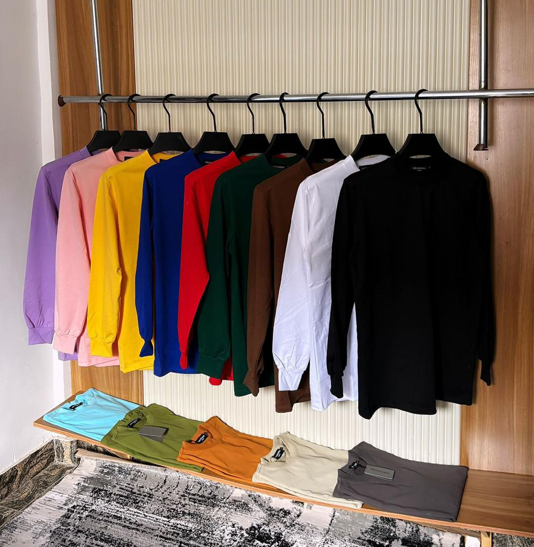 Build your wardrobe with these ? solid long-sleeve crewnecks! Soft cotton-blend in vibrant colors (purple, pink, yellow, blue, red, green, brown, white, black) – slim fit with stretch for comfy layering or solo wear in Lagos heat.