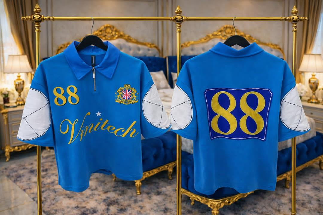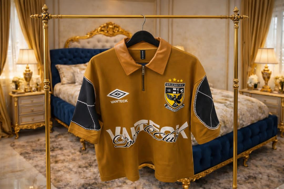 Heavy Lagos drip with this STR33T SAVANT polo – oversized, patched-up heat in mustard gold!