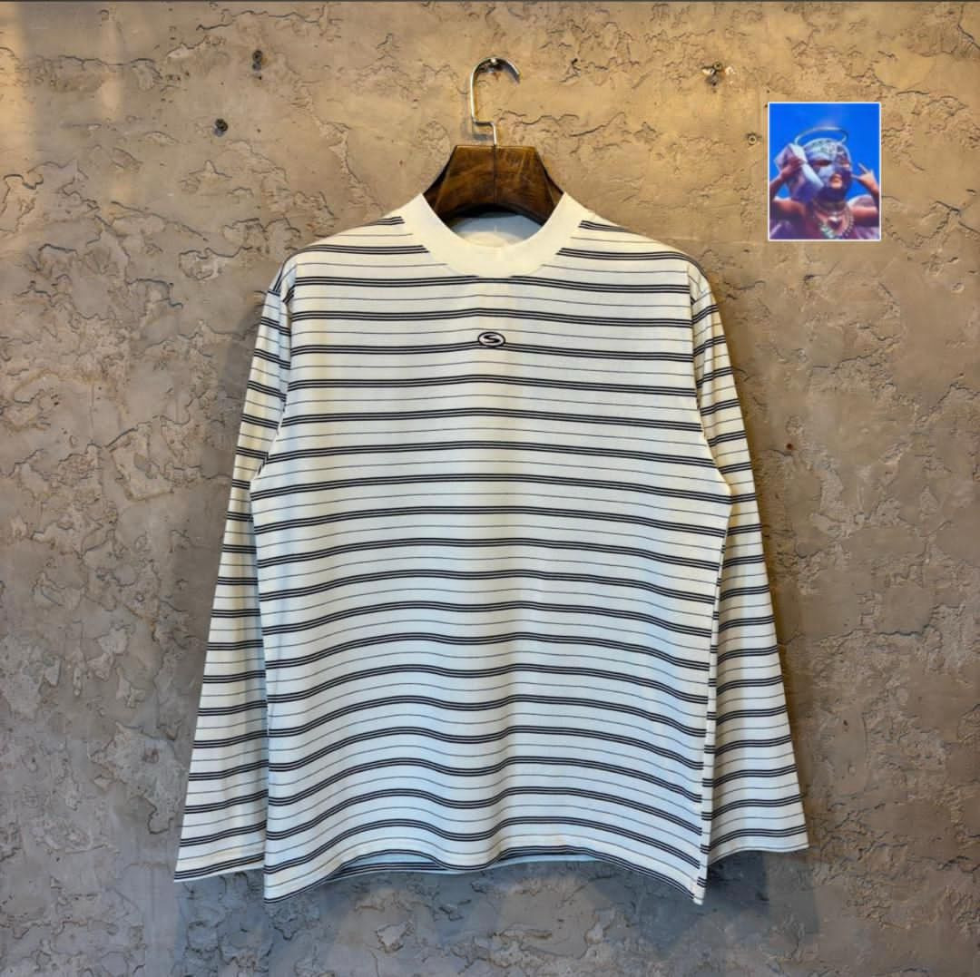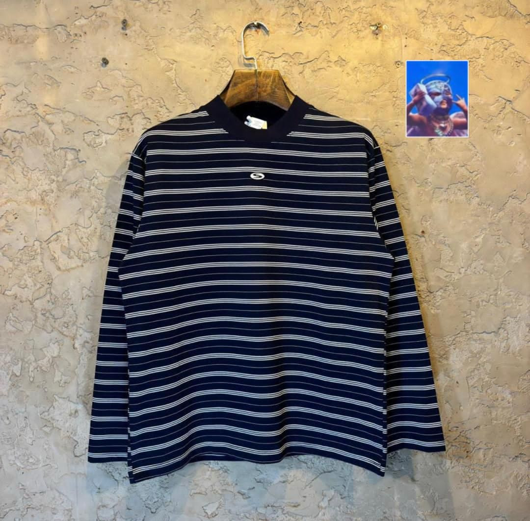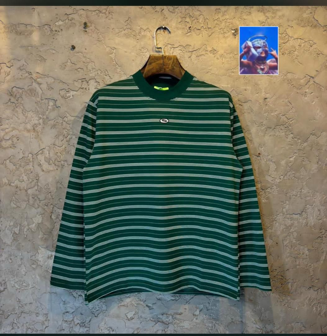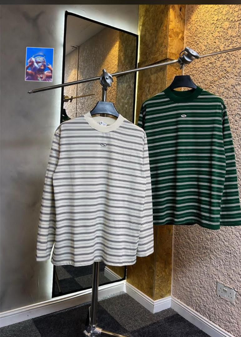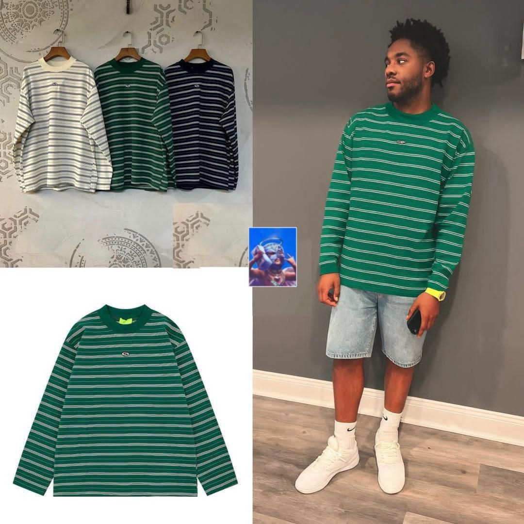 Bring timeless retro energy to your wardrobe with this striped long-sleeve crewneck top – available in fresh green/white and classic navy/grey/white rugby stripes! The horizontal stripes run across the body for that vintage sportswear look, accented by contrasting ribbed crewneck and cuffs, plus a small white embroidered chest logo/crest for subtle premium detail. Oversized relaxed boxy fit, dropped shoulders, longer length, ribbed hem, and soft cotton-poly blend make it ultra-comfortable and versatile—perfect for Plumstead layering under jackets in February chill or standalone with jeans/cargos/sneakers for preppy-street, athleisure, or casual everyday style.