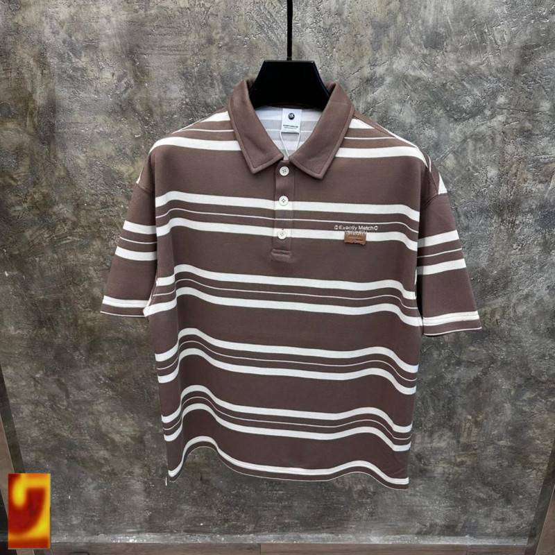 Keep it timeless and elevated with this Exact Match striped polo – oversized, preppy-street perfection in brown + cream!