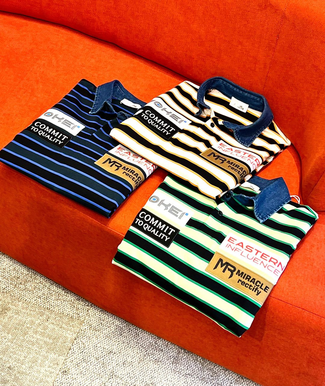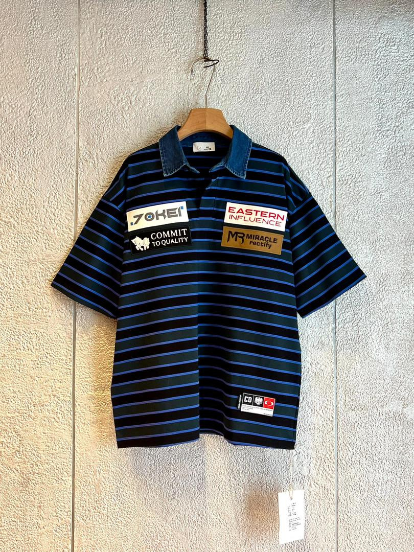 Score retro-preppy points with these oversized rugby polo shirts – bold stripes meet motivational slogan graphics for standout hype energy! The soft cotton-blend french terry or fleece fabric offers cozy mid-weight warmth and premium hand-feel, while the classic rugby spread collar (in light blue or contrasting tones), quarter-zip or button placket, and multi-color striped ribbed cuffs/hem (blue/yellow/green/black combos) deliver authentic sport-prep vibes with modern street edge. The large chest print features powerful block text ("COMMIT TO QUALITY", "EASTERN INFLUENCE", "MR MIRACLE rectify", "OKEI", etc.) in contrasting colors with subtle patch/distressed effects, plus small branding tags for clean detail. Relaxed boxy fit with dropped shoulders, short sleeves, and longer untucked hem provide effortless drape—perfect for Plumstead zipping up over tees with jeans/cargos/sneakers or wearing open for transitional preppy-street, Y2K-revival, retro-hype, or elevated casual flex in mild February weather.