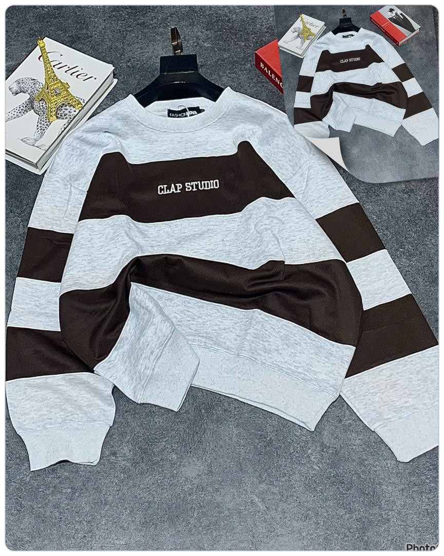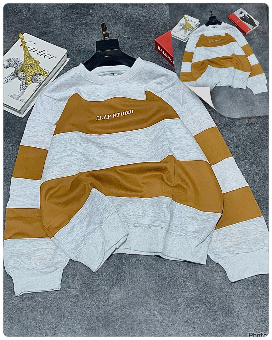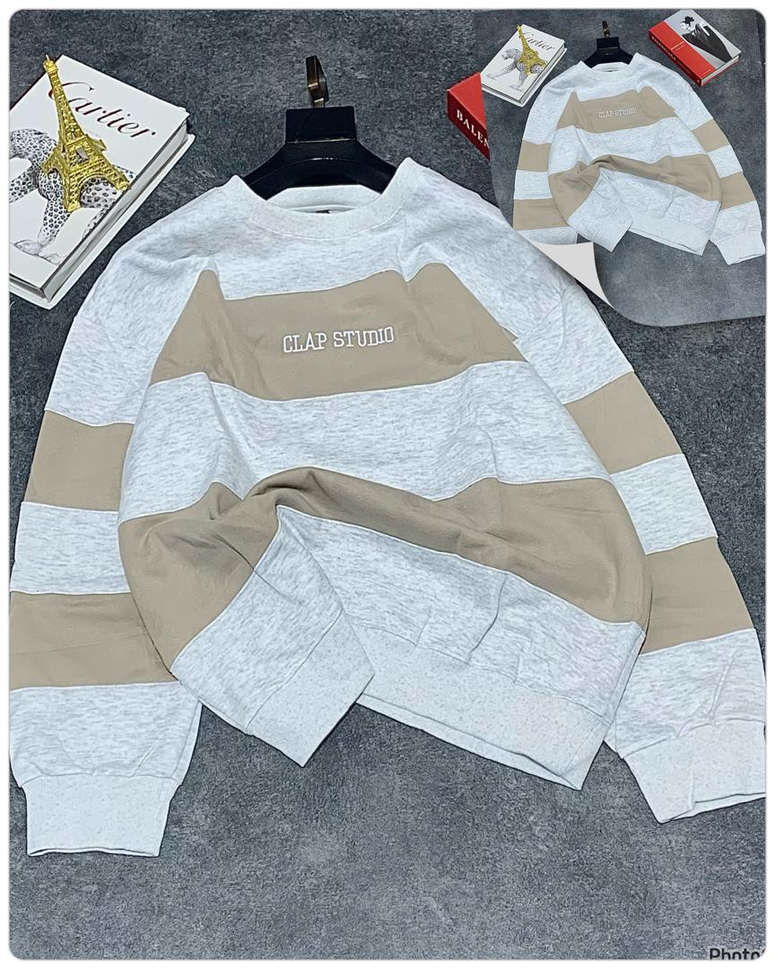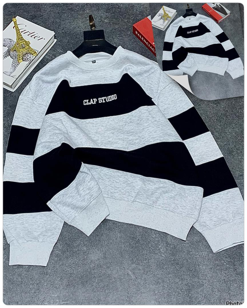 Stay cozy and stylish in this oversized striped sweatshirt featuring bold horizontal black and grey color block stripes! The standout 'CLAP STUDIO' chest print gives it a modern streetwear edge, perfect for casual outings, layering, or Y2K-inspired looks. Made from soft, thick fleece blend for ultimate comfort and warmth—ideal for fall, winter, or chilly spring days.