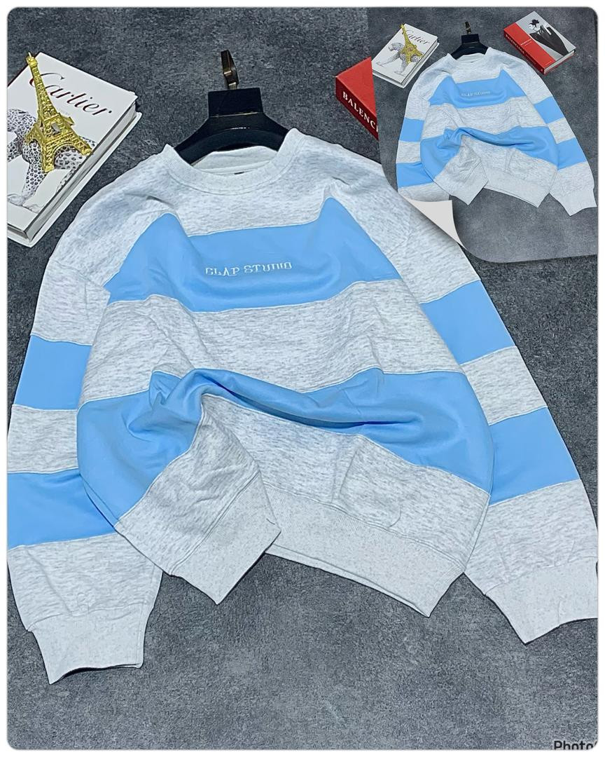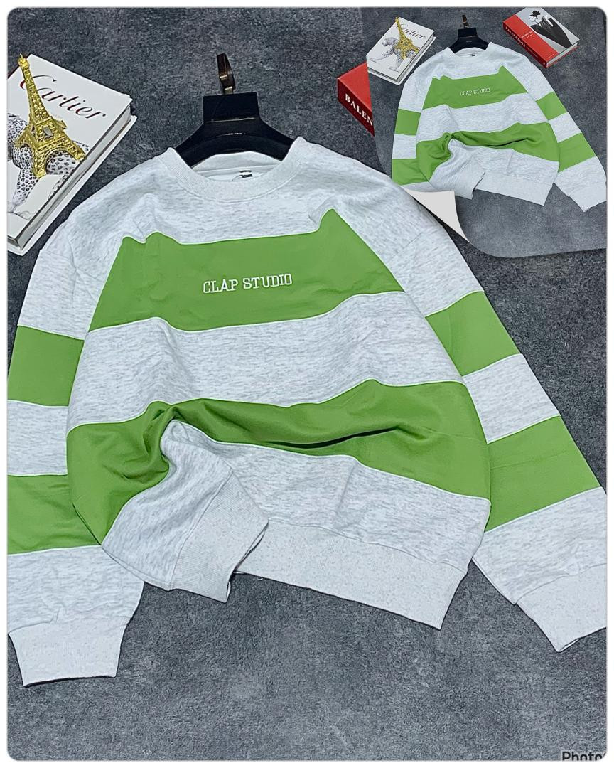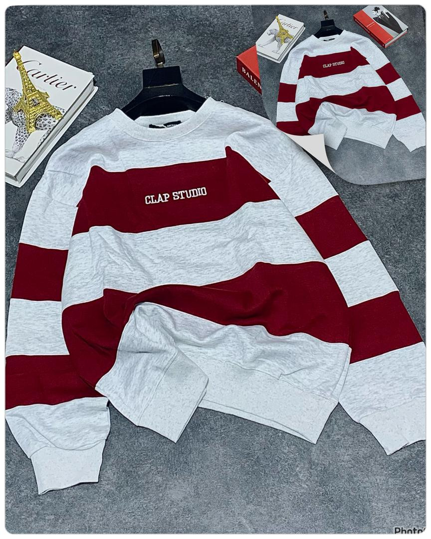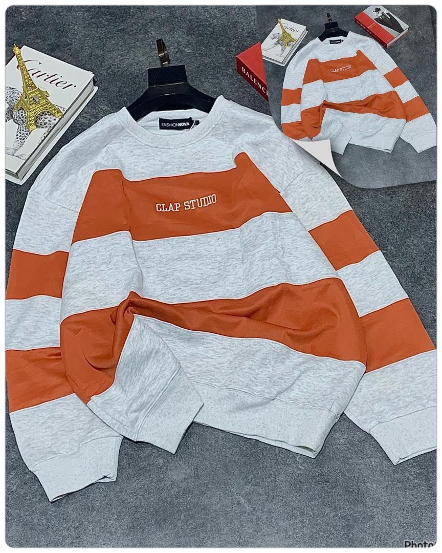 Stay cozy and stylish in this oversized striped sweatshirt featuring bold horizontal black and grey color block stripes! The standout 'CLAP STUDIO' chest print gives it a modern streetwear edge, perfect for casual outings, layering, or Y2K-inspired looks. Made from soft, thick fleece blend for ultimate comfort and warmth—ideal for fall, winter, or chilly spring days.