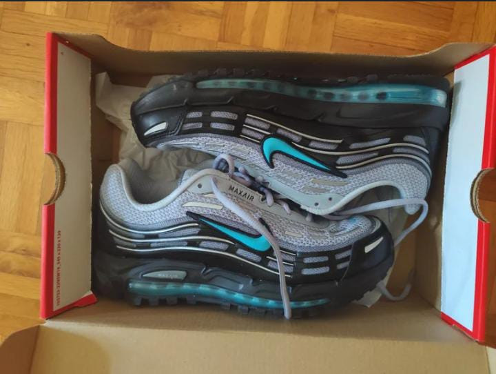 Step into iconic '90s runner style with these white, black, and emerald green Nike Air Max 97-inspired sneakers – the perfect retro-futuristic flex! The breathable white mesh/leather upper features bold black wave overlays and piping for classic contrast, accented by vibrant emerald green Swoosh, heel pull tab, midsole edges, and inner lining. The full-length Max Air bubble midsole (translucent green visible air unit) delivers legendary cushioning, bounce, and height, paired with a rugged traction outsole for grip—ideal for Plumstead's chilly February streets or all-year urban comfort.