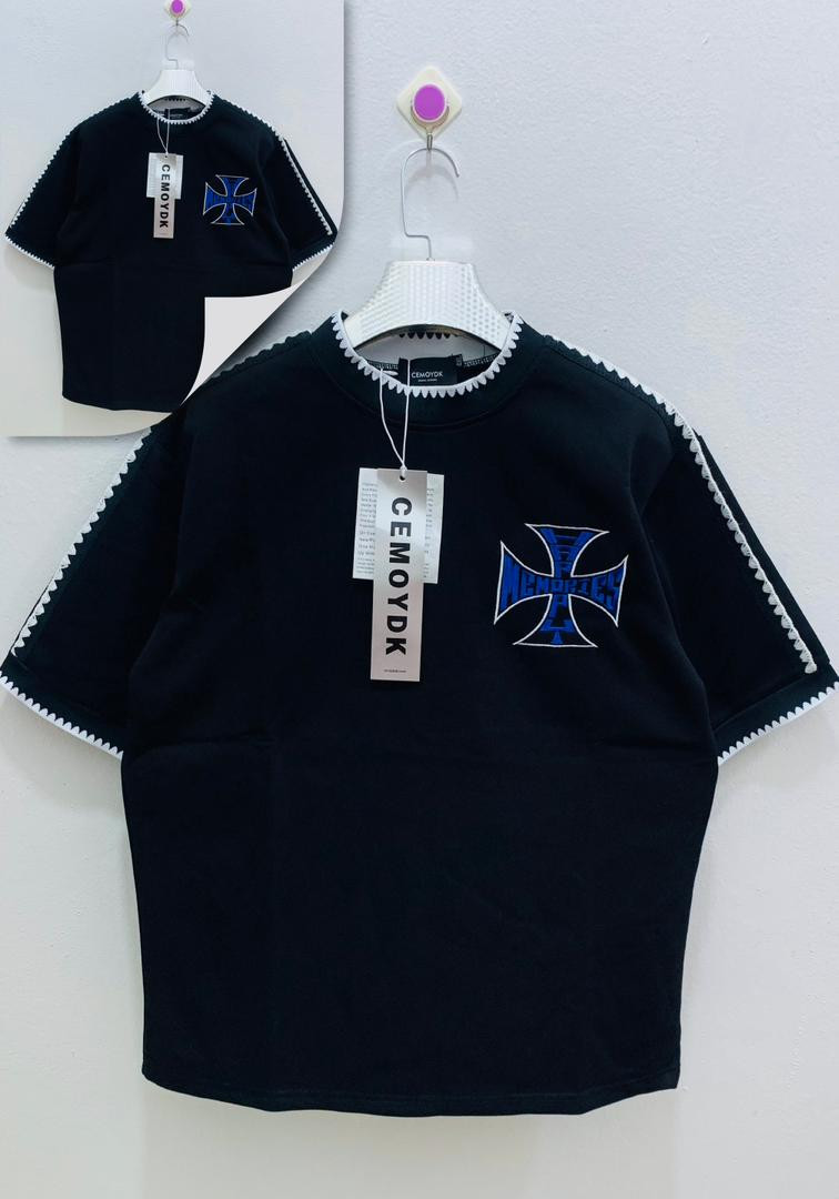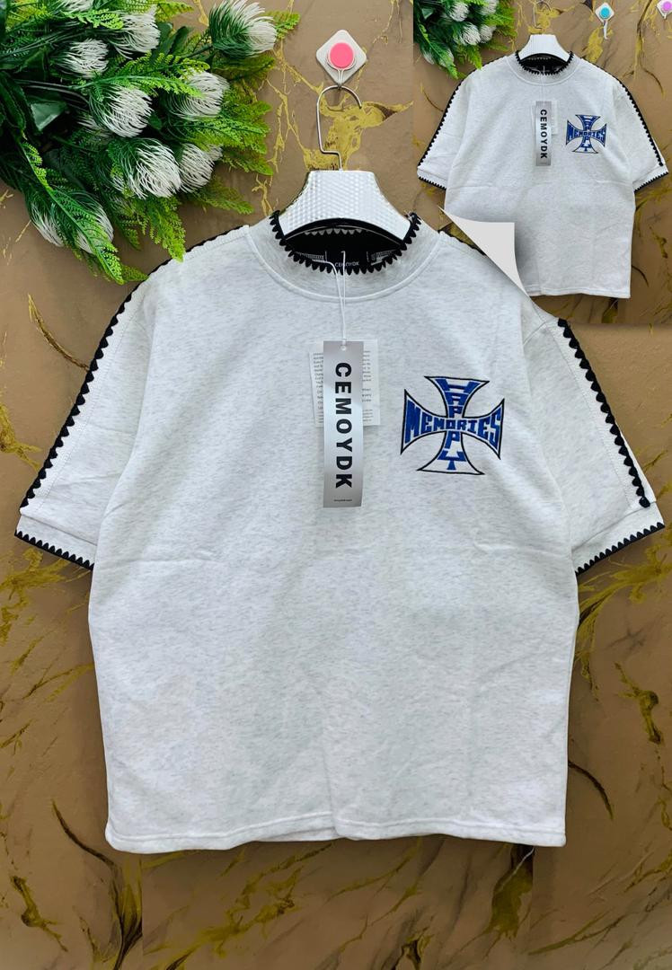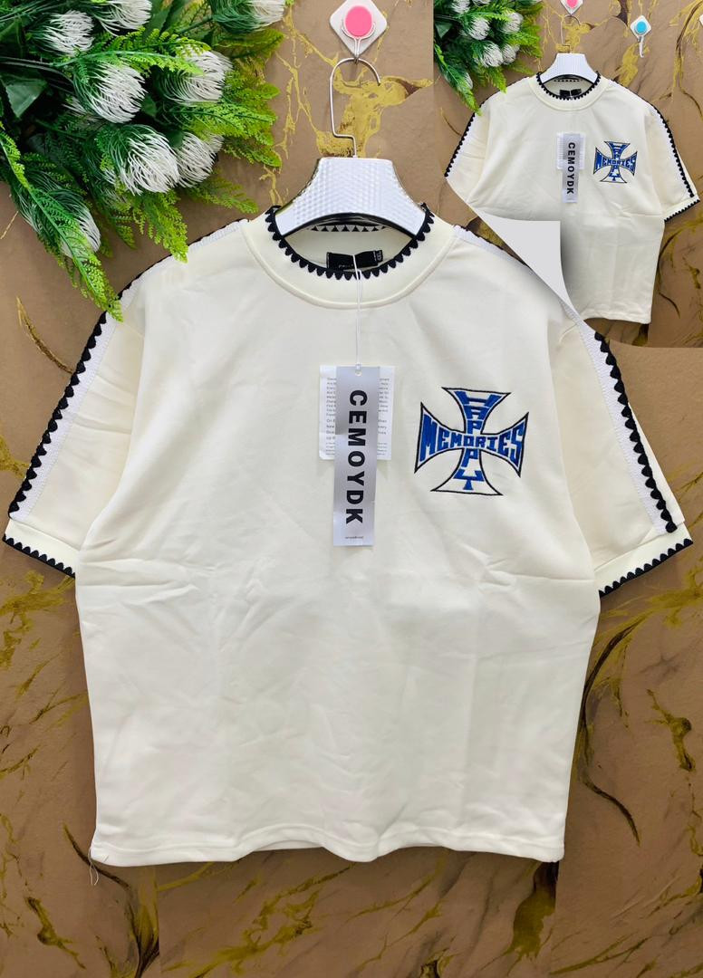 Channel quiet-goth nostalgia with this white oversized T-shirt – featuring a striking blue/white embroidered Memories cross crest for pure alt-street impact! The clean white base is elevated by black/white serrated/zigzag trim on neckline, sleeve cuffs, and hem (edgy, punk-inspired detail), while the large central chest embroidery of a blue-outlined cross/crest with integrated 'MEMORIES' text (F-centered motif) delivers that iconic Chrome Hearts / alt-hype vibe. Oversized boxy fit, dropped shoulders, longer length, and soft cotton-blend fabric make it ultra-comfortable and versatile—perfect for Plumstead layering under hoodies/jackets or solo with cargos/jeans/chunky sneakers for maximalist streetwear, quiet-goth, or Y2K-revival looks in mild February weather.